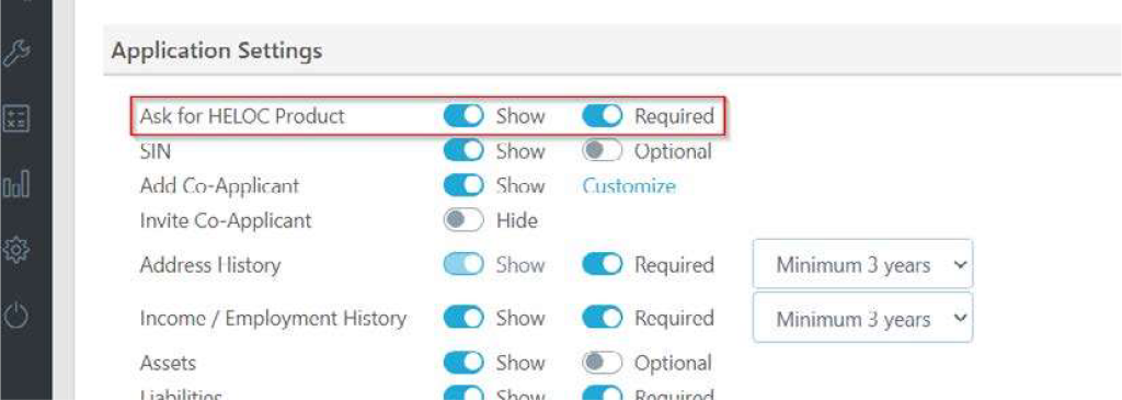 A new setting “Ask for HELOC Product” is now available under App Settings 3.0: