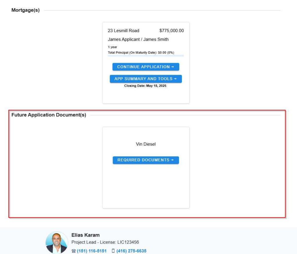 Once a document request is sent from the lead, the applicant will see it in their App 3.0 portal under a new section called ‘Future Application Document(s)’