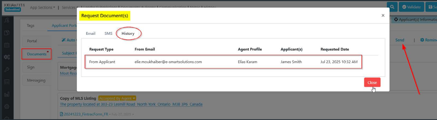 A new “History” tab has been added to the Request Document(s) window in the Application Portal, making it easy for agents to track all document requests.