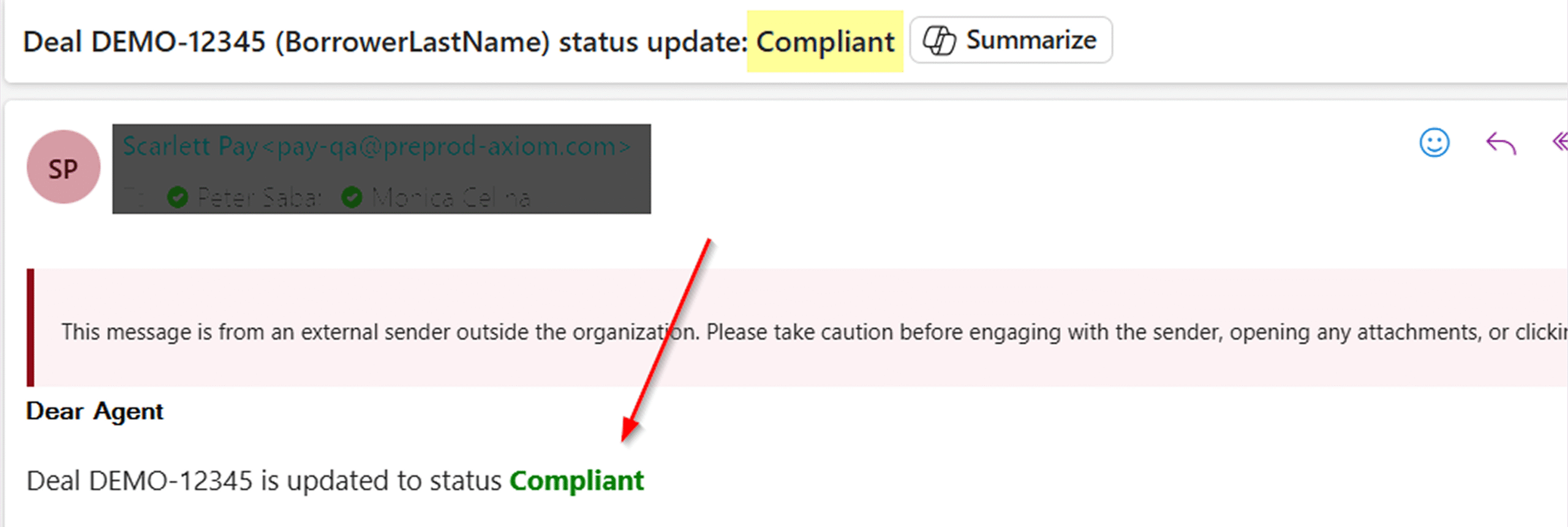 To improve clarity and efficiency, compliance-related email notifications now feature color-coded status indicators: